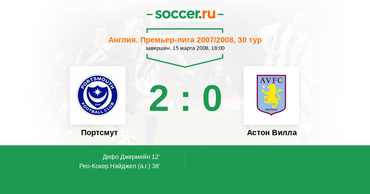 Портсмут 1:2 Астон Вилла