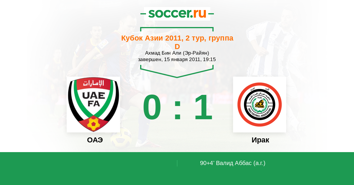 | Кубок Азии | 1 | 1 | 0 | 0 |