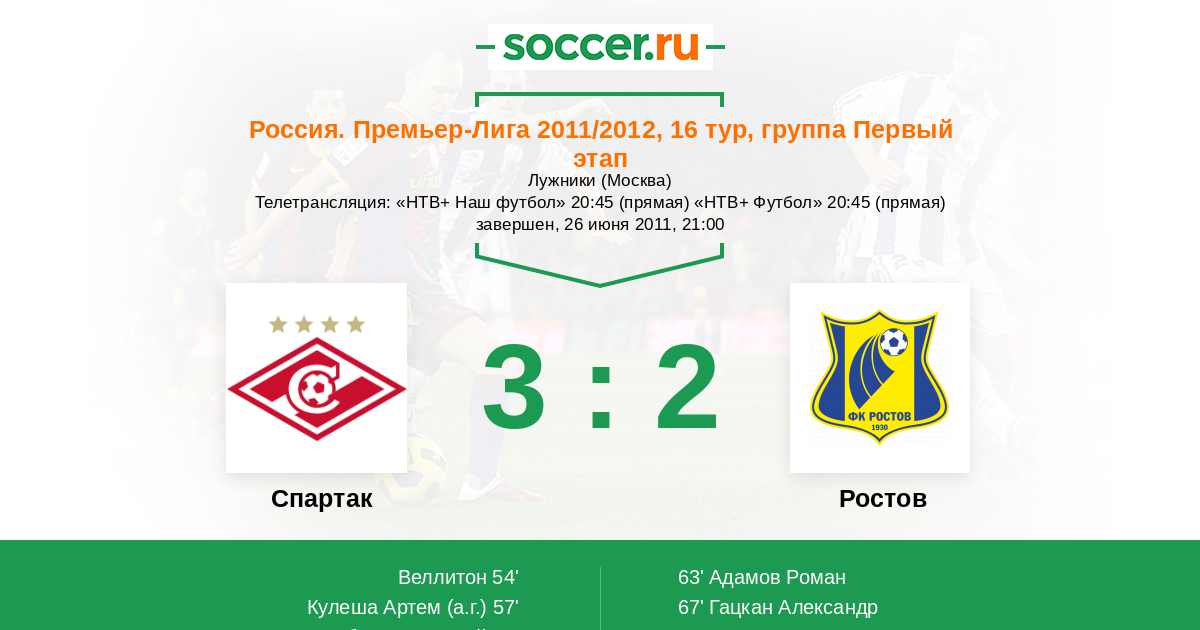 Москва, Лужники Телетрансляция: "НТВ+ Наш футбол" 20:45 (прямая) "НТВ+ Футбол" 20:45 (прямая)
