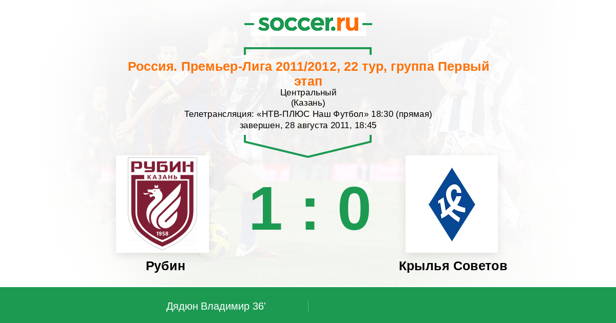 Казань, Центральный Телетрансляция: "НТВ-ПЛЮС Наш Футбол" 18:30 (прямая)