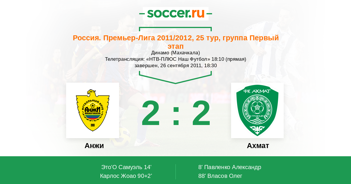 | Анжи | 22:27 | 12:13 | 10:14 |