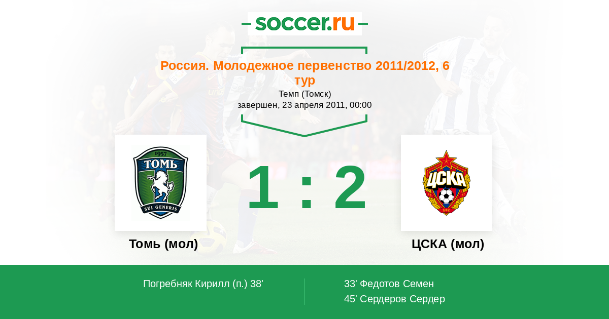 | Томь (мол) | ЦСКА (мол) | |