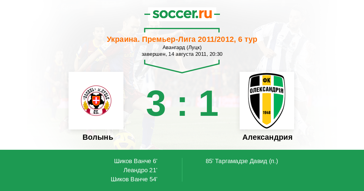 | Волынь | 8:15 | 2:4 | 6:11 |