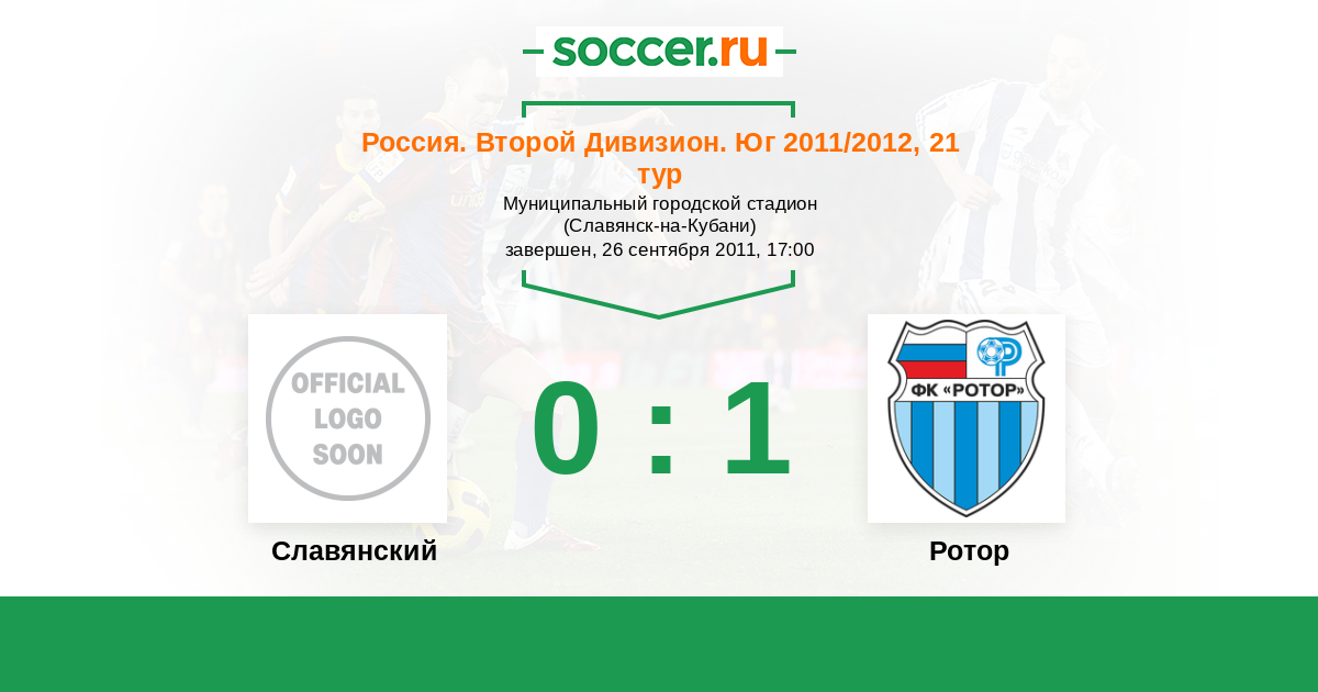 | Россия. Вторая лига. Группа 1 | 1 | 0 | 0 | 1 |