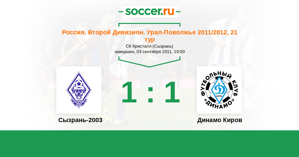 | Сызрань-2003 | 21:7 | 10:2 | 11:5 |