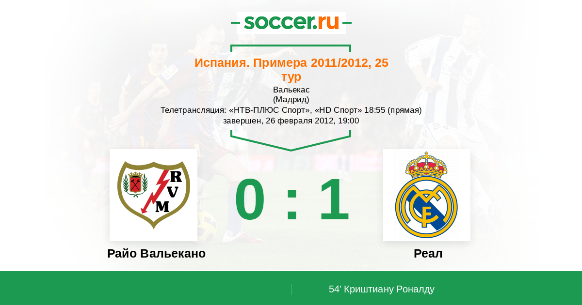 Мадрид, Вальекас Телетрансляция: "НТВ-ПЛЮС Спорт", "HD Спорт" 18:55 (прямая)
