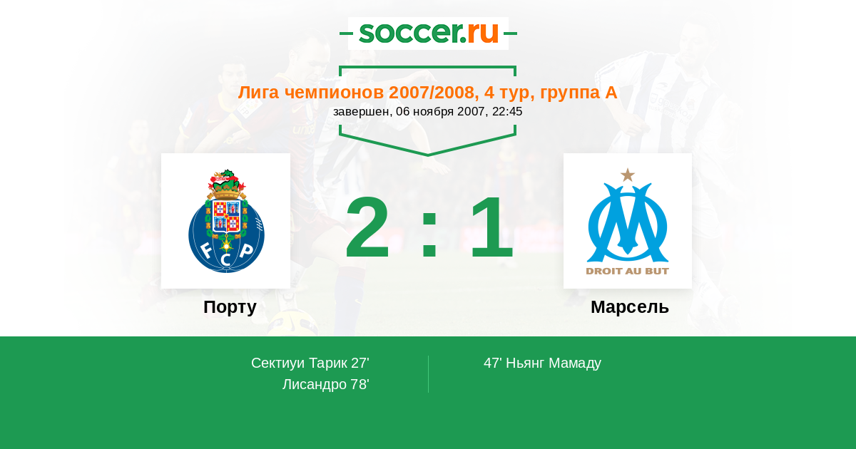 | Порту | Марсель | |