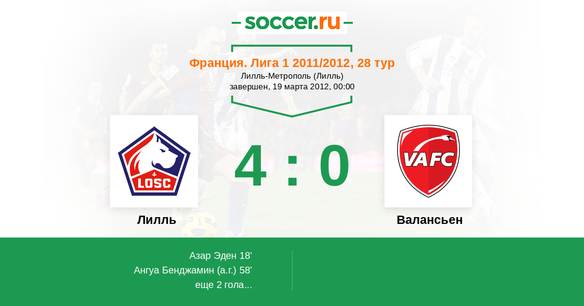 | Валансьен | 11:21 | 7:6 | 4:15 |