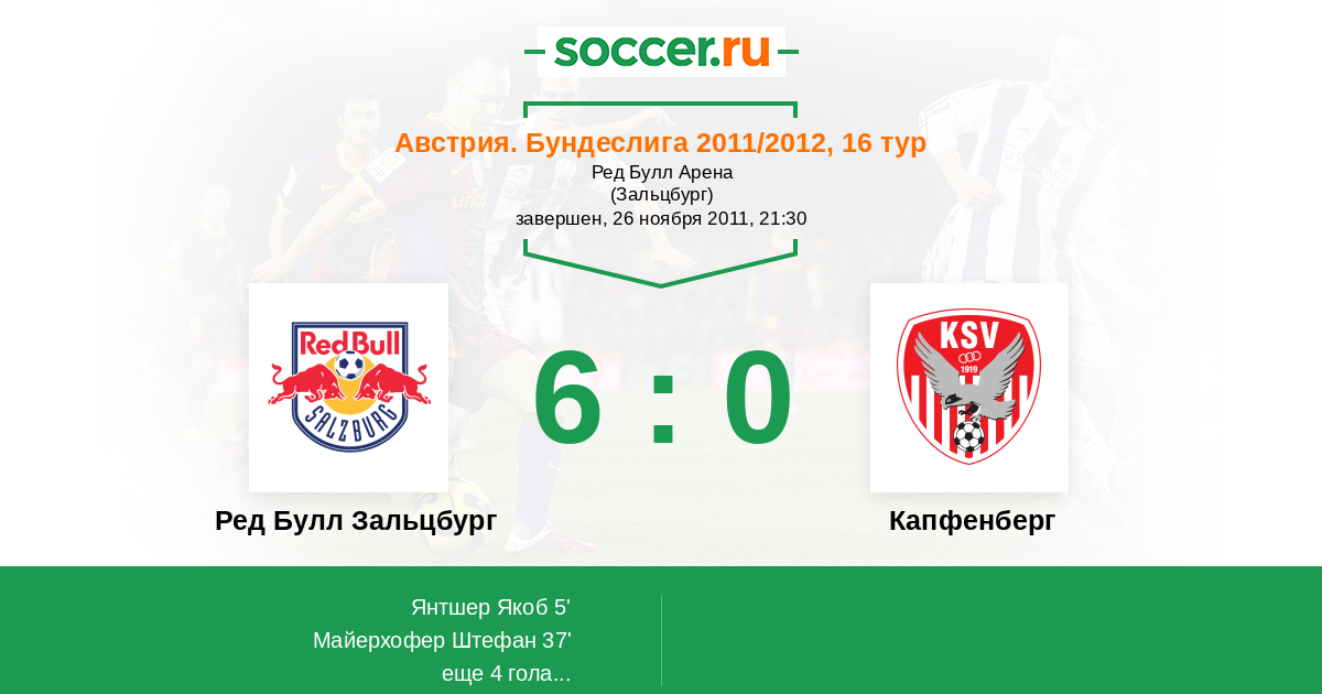 | Ред Булл Зальцбург | 18:7 | 11:4 | 7:3 |