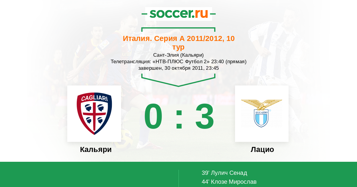| Кальяри | 43:89 | 20:35 | 23:54 |