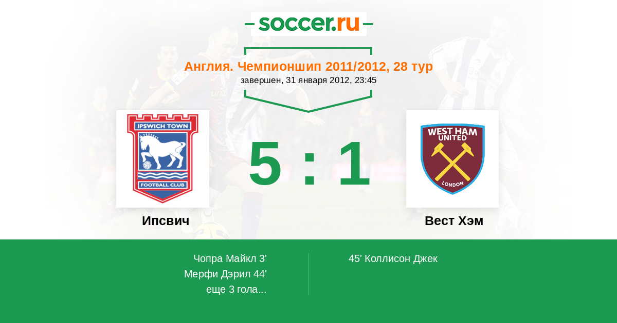 | Ипсвич | 4:9 | 2:5 | 2:4 |