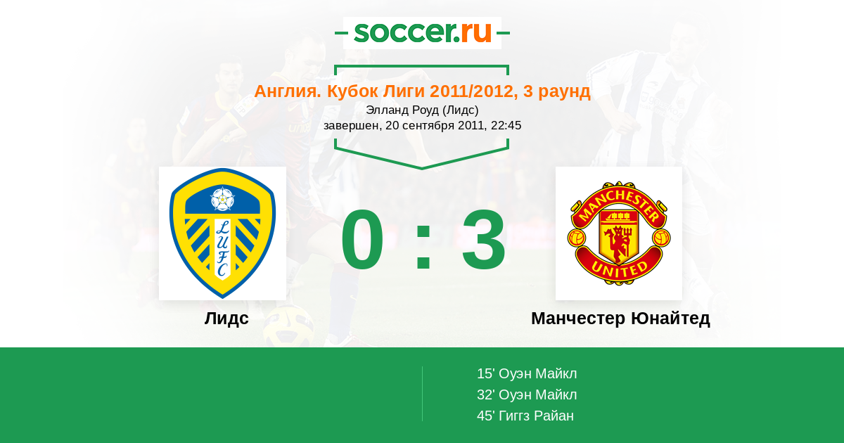 | Лидс | Манчестер Юнайтед | |