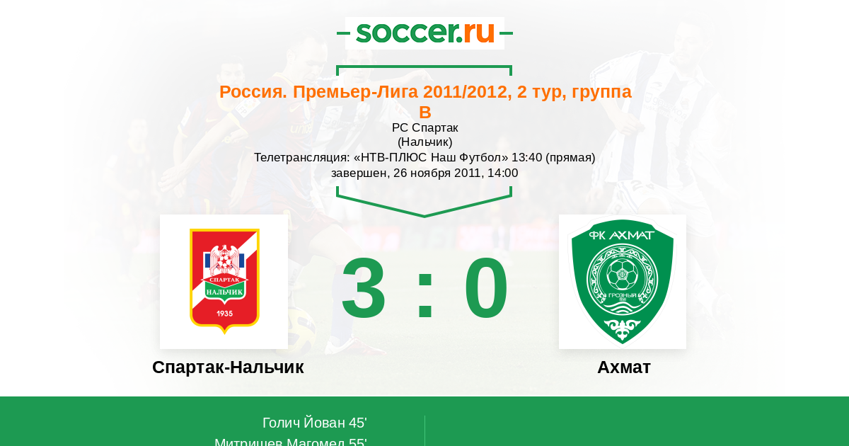 Нальчик, РС Спартак Телетрансляция: "НТВ-ПЛЮС Наш Футбол" 13:40 (прямая)