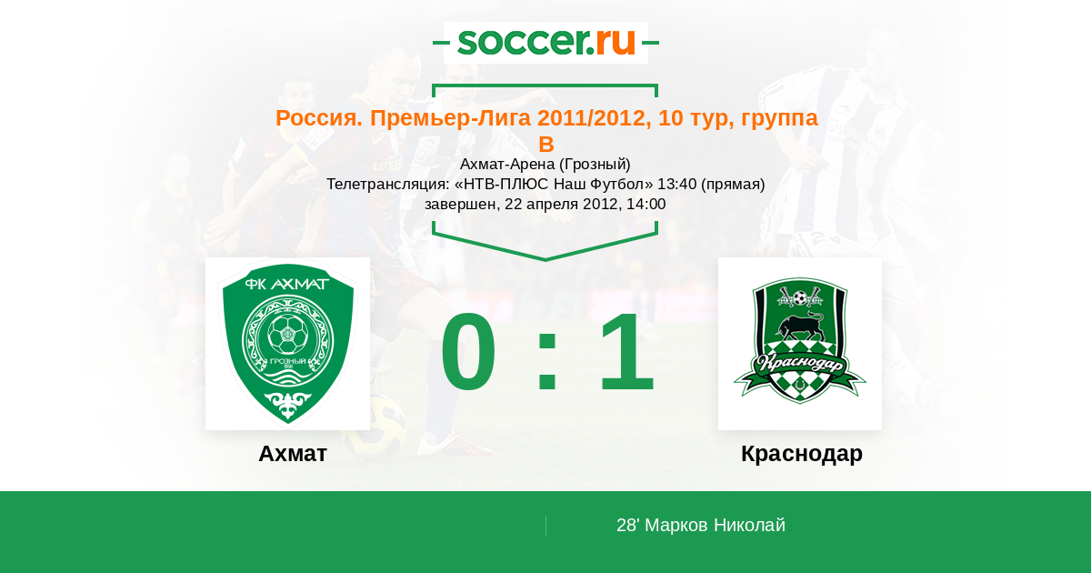 Грозный, Ахмат-Арена Телетрансляция: "НТВ-ПЛЮС Наш Футбол" 13:40 (прямая)