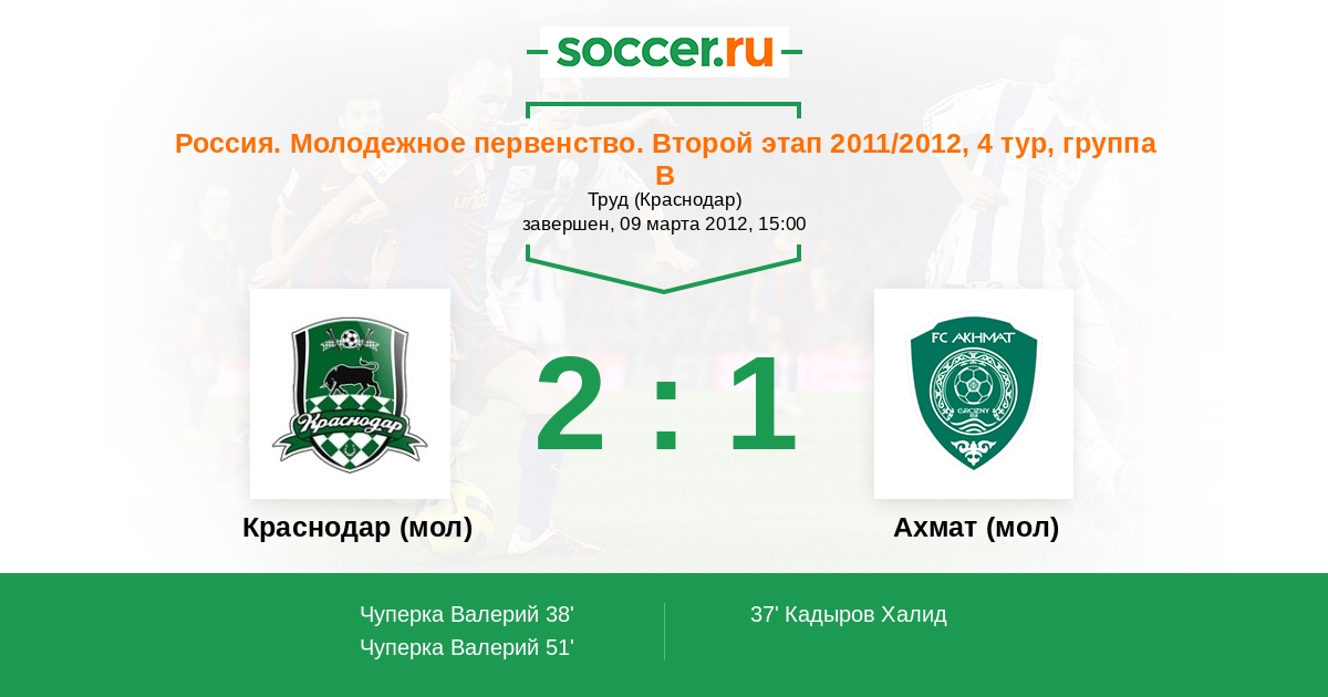 | Краснодар (мол) | 49:30 | 33:12 | 16:18 |