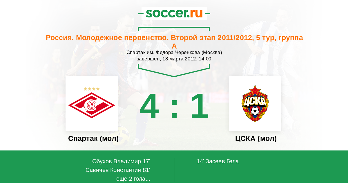 | Спартак (мол) | 52:55 | 25:22 | 27:33 |