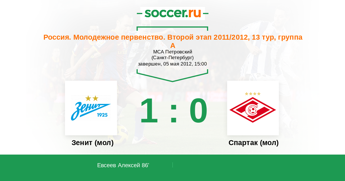 | Зенит (мол) | Спартак (мол) | |