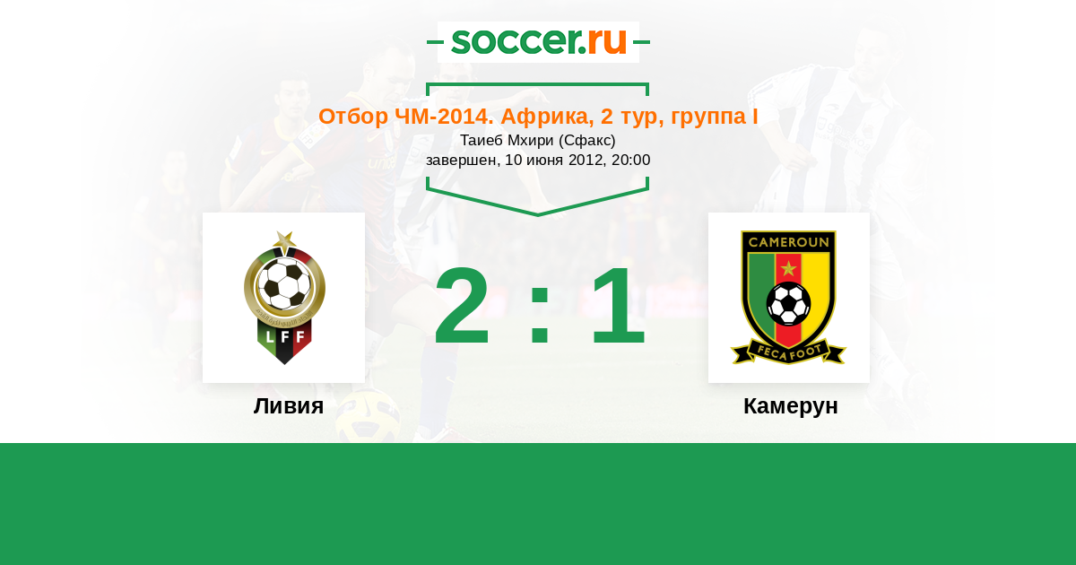 | Камерун | 5:2 | 4:1 | 1:1 |