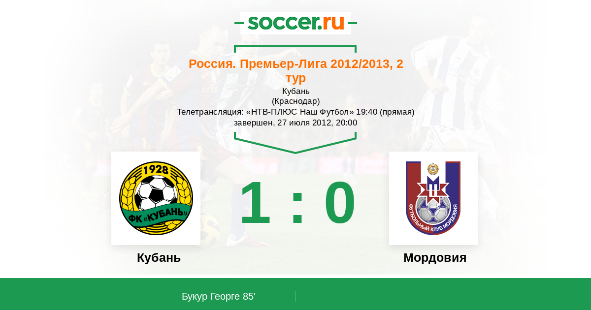 Краснодар, Кубань Телетрансляция: "НТВ-ПЛЮС Наш Футбол" 19:40 (прямая)