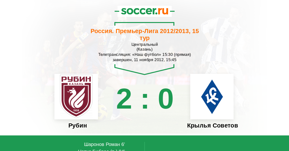Казань, Центральный Телетрансляция: "Наш футбол" 15:30 (прямая)