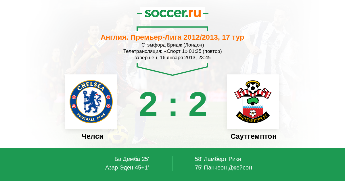 Лондон, Стэмфорд Бридж Телетрансляция: "Спорт 1" 01:25 (повтор)