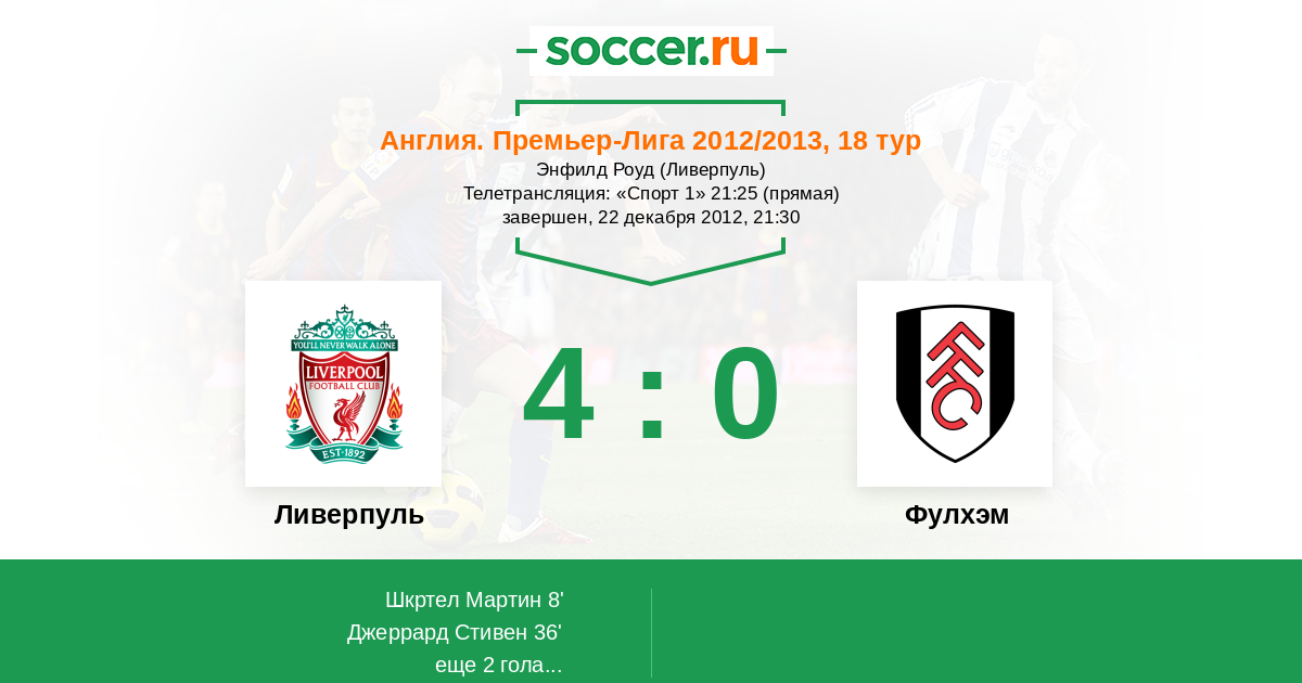 Ливерпуль, Энфилд Роуд Телетрансляция: "Спорт 1" 21:25 (прямая)