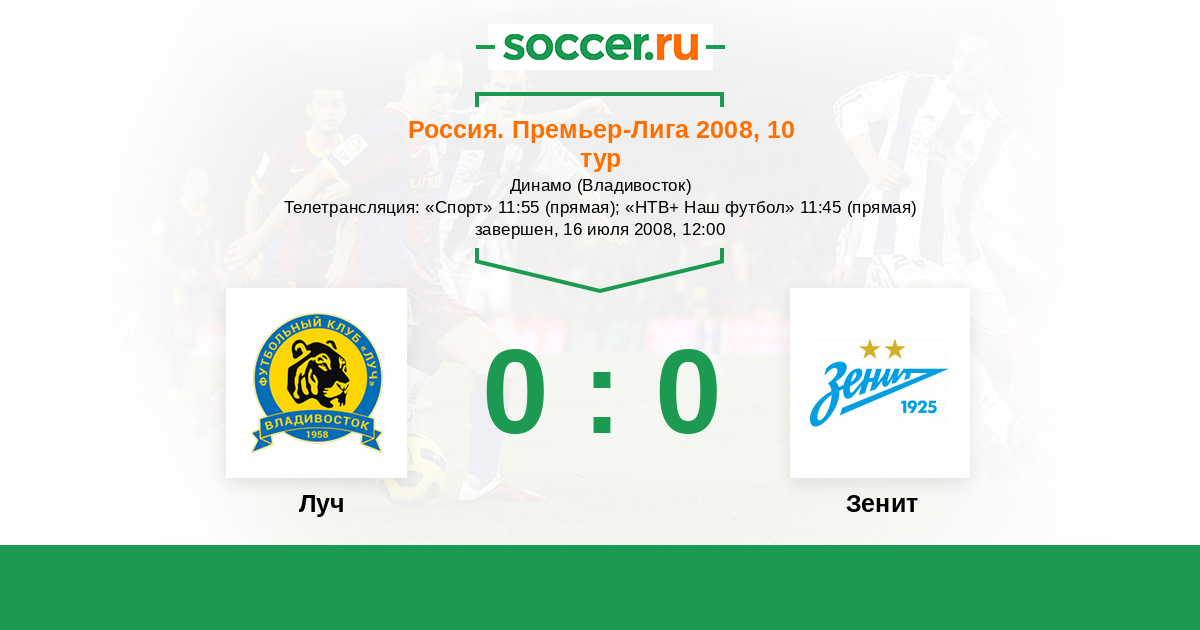 Владивосток, Динамо Телетрансляция: "Спорт" 11:55 (прямая); "НТВ+ Наш футбол" 11:45 (прямая)