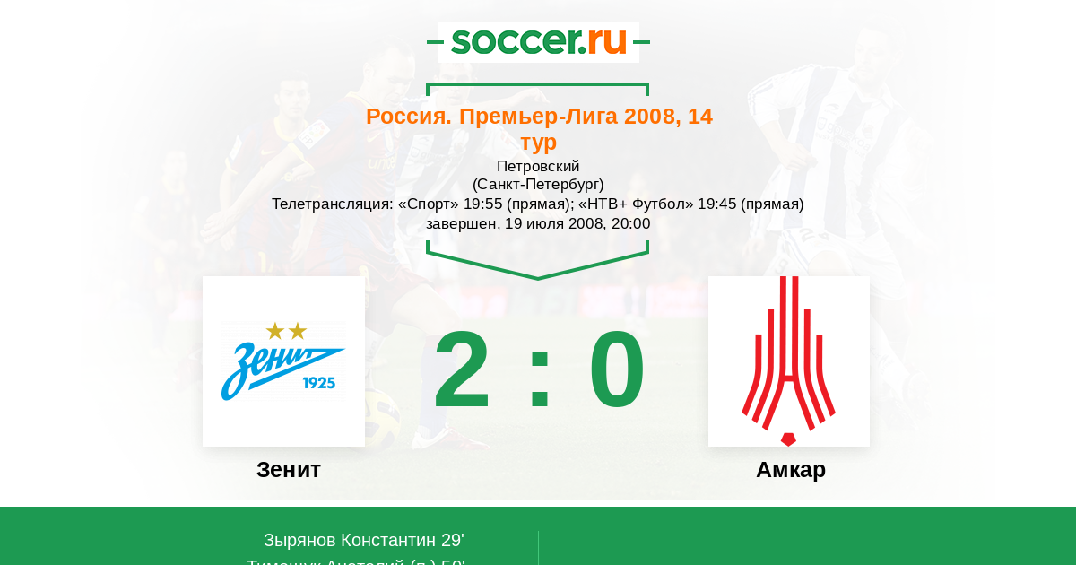 Санкт-Петербург, Петровский Телетрансляция: "Спорт" 19:55 (прямая); "НТВ+ Футбол" 19:45 (прямая)