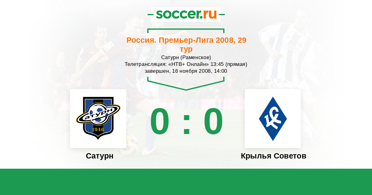 Раменское, Сатурн Телетрансляция: "НТВ+ Онлайн" 13:45 (прямая)