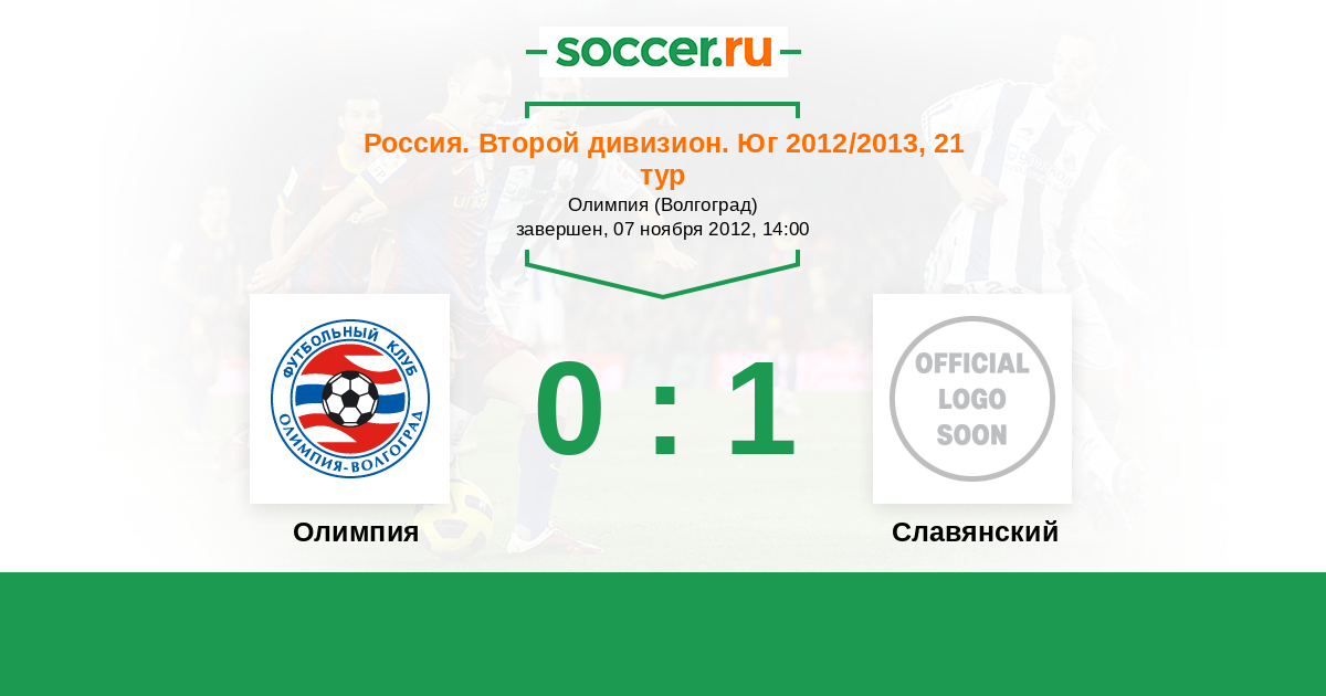 | Олимпия | 0:2 | 0:0 | 0:2 |