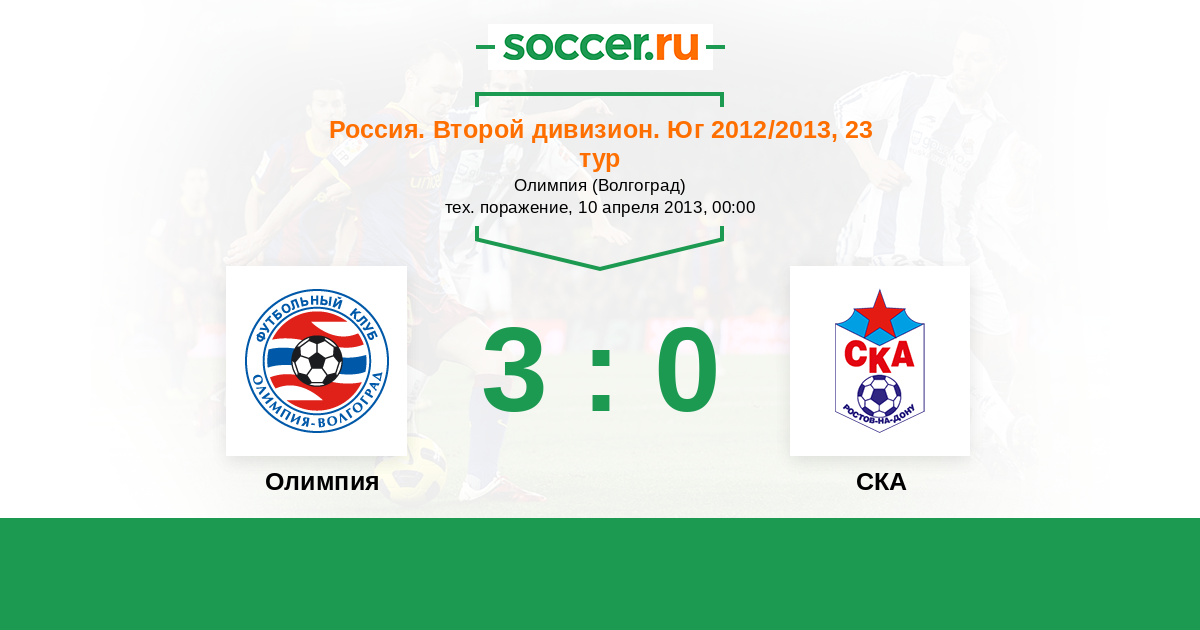 | Олимпия | 4:2 | 1:0 | 3:2 |