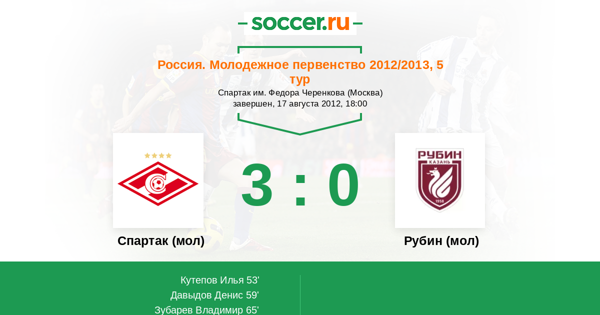 | Спартак (мол) | 61:36 | 38:18 | 23:18 |