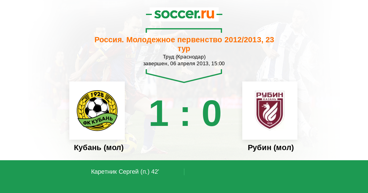 | Кубань (мол) | 9:17 | 2:5 | 7:12 |
