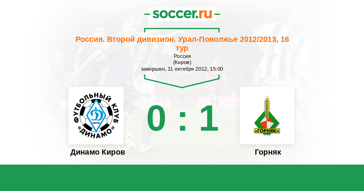 | Динамо Киров | 5:23 | 4:10 | 1:13 |
