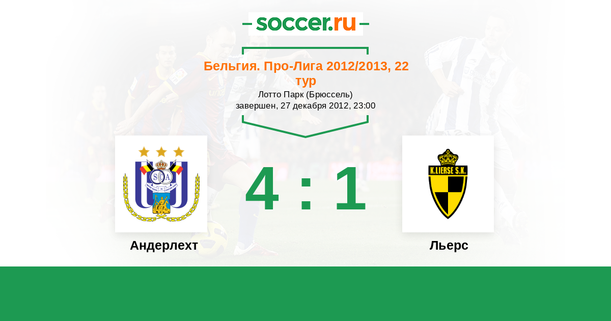 | Андерлехт | 21:8 | 15:0 | 6:8 |