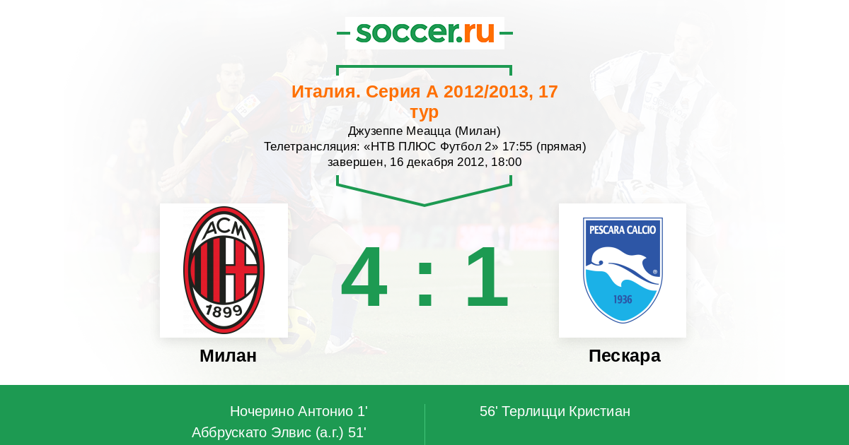 | Милан | Пескара | |