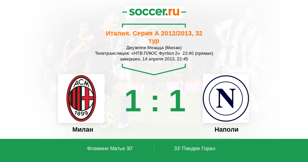 Милан, Джузеппе Меацца Телетрансляция: "НТВ ПЛЮС Футбол 2" 22:40 (прямая)