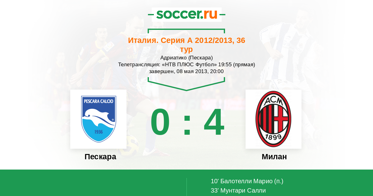 | Пескара | Милан | |
