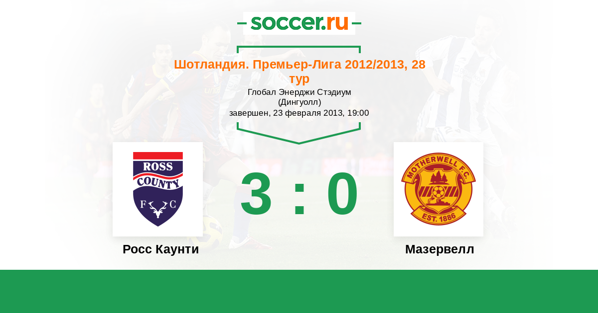 | Росс Каунти | 55:80 | 27:34 | 28:46 |