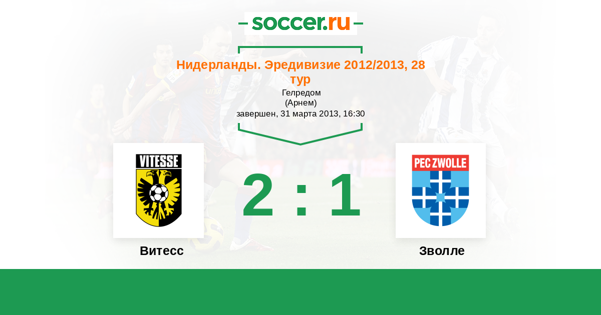 | Витесс | 50:28 | 28:10 | 22:18 |