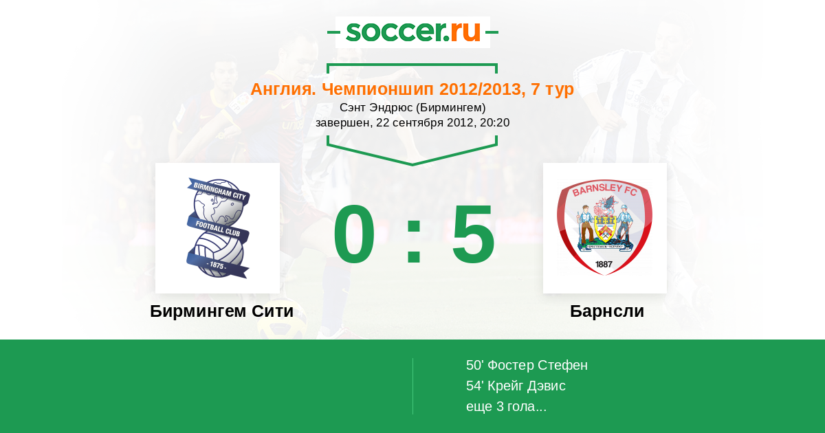 | Бирмингем Сити | 58:39 | 25:20 | 33:19 |
