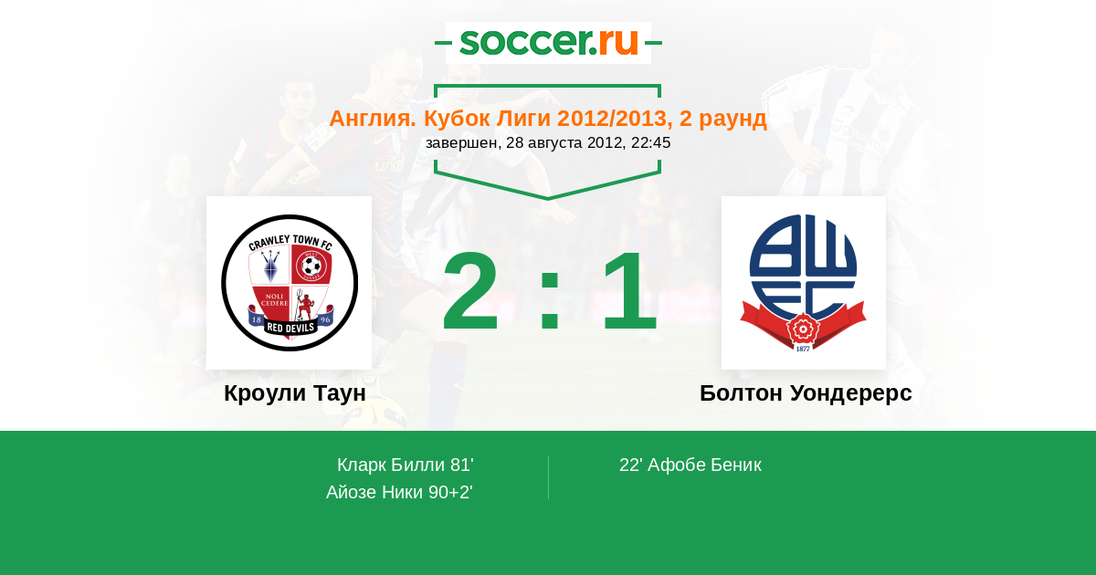 | Кроули Таун | Болтон Уондерерс | |