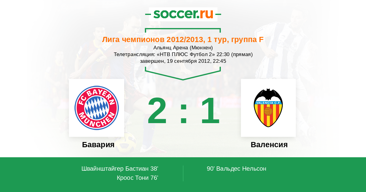 Мюнхен, Альянц Арена Телетрансляция: "НТВ ПЛЮС Футбол 2" 22:30 (прямая)