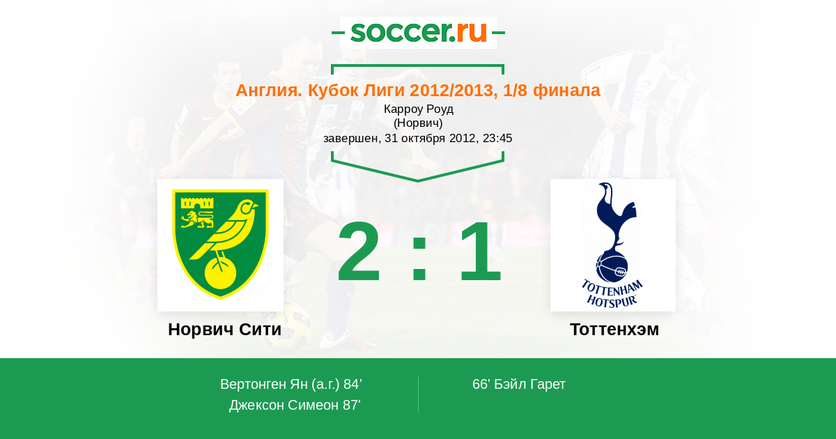 | Норвич Сити | Тоттенхэм | |