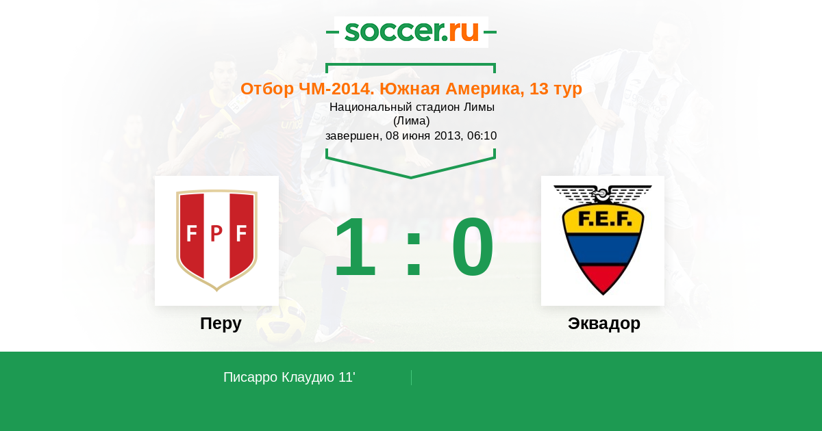 | Эквадор | 29:19 | 18:12 | 11:7 |