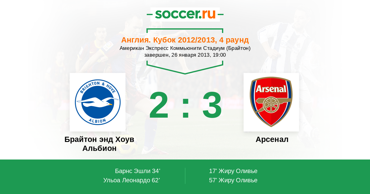 | Брайтон энд Хоув Альбион | Арсенал | |