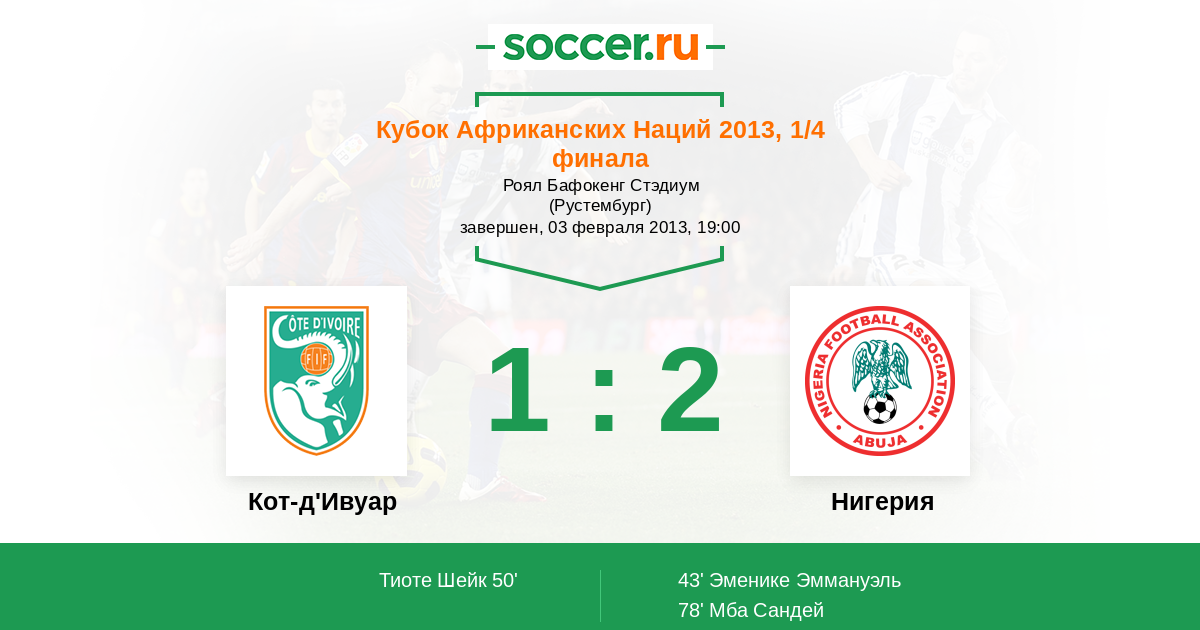 | Нигерия | 2:5 | 1:4 | 1:1 |
