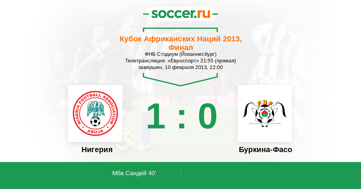 | Буркина-Фасо | 2:5 | 0:0 | 2:5 |