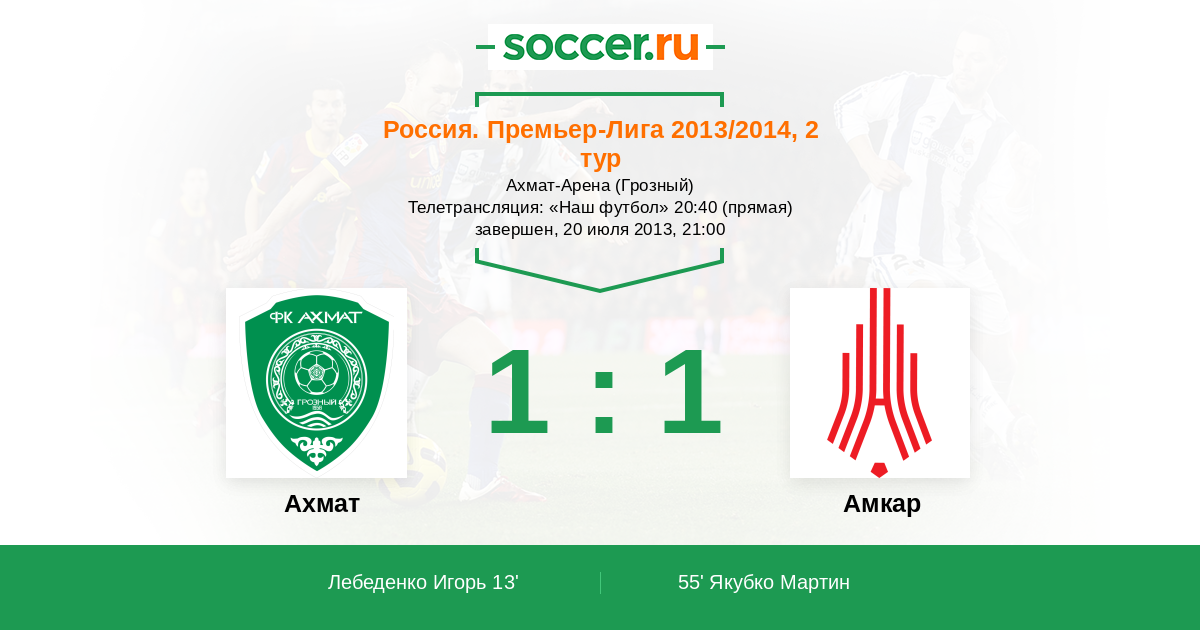 Грозный, Ахмат-Арена Телетрансляция: "Наш футбол" 20:40 (прямая)
