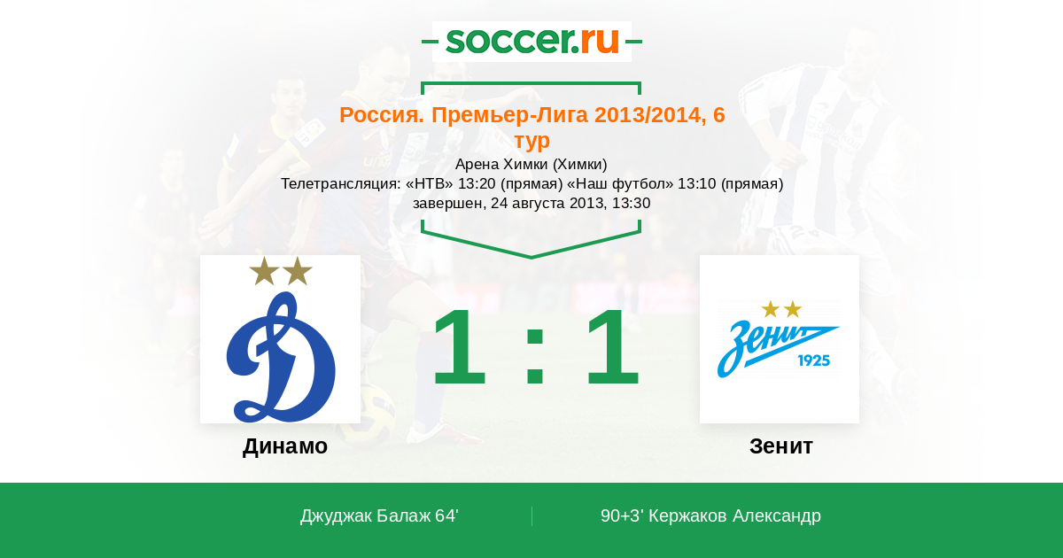 Химки, Арена Химки Телетрансляция: "НТВ" 13:20 (прямая) "Наш футбол" 13:10 (прямая)